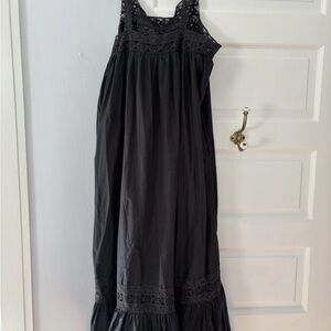 J. Crew black Eyelet trim Tank Cotton Poplin flouncy maxi Athena dress size XL