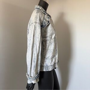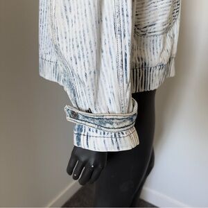 This vintage acid wash zip-up jacket from S.B.II by Bitterman serves up major retro vibes. Made from 100% cotton with a bleached vertical stripe pattern and classic utility pockets, it’s a standout piece for streetwear lovers or denim collectors. Has a light stain on front (shown in photo), but otherwise in good vintage condition.