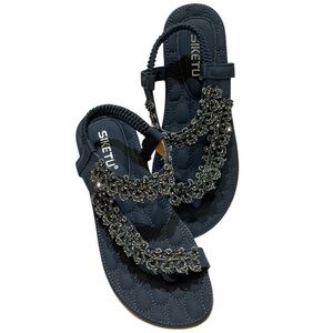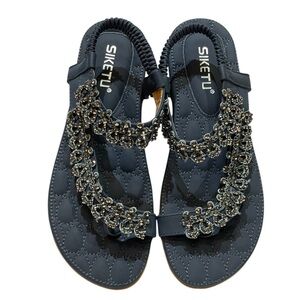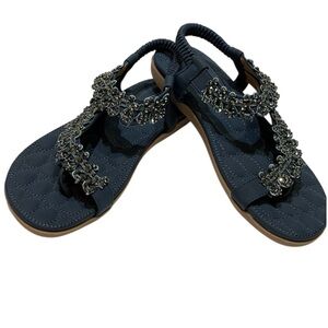 💥SALE💥SIKETU NAVY JEWELED FLIP FLOP SANDALS SZ