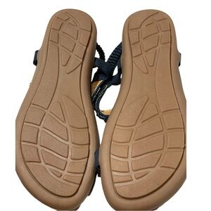 Purchased but never worn! Pretty navy flip flops with silver jewelry accents. Comfortable padded footbed. Stretch around ankle for “easy on & off”. Excellent preowned condition.