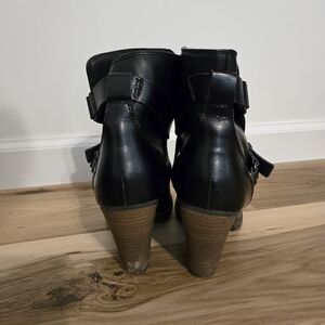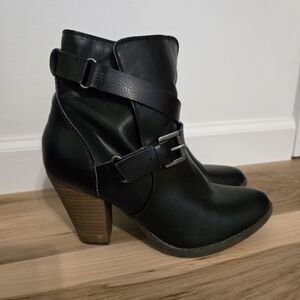 American Eagle Outfitters Black Leather Block Style Heeled Ankle Boots with Buckles