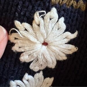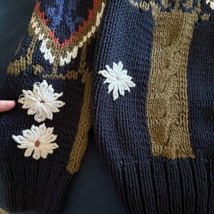 Vintage Henry Grethel Hand Knit Cable Intarsia Floral Cotton V neck Cardigan M