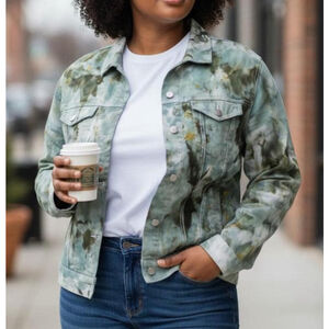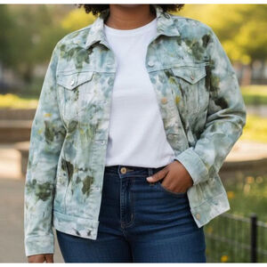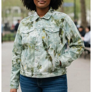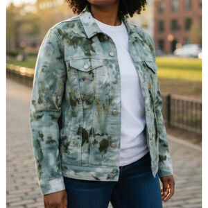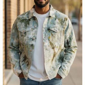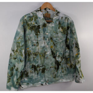 Make a bold statement with this one-of-a-kind reclaimed XL jean jacket, featuring a unique hand-tie-dyed design for an artistic and stylish touch. Made from 100% cotton with no stretch, this structured jacket is both durable and functional, perfect for layering in any season.