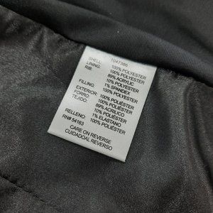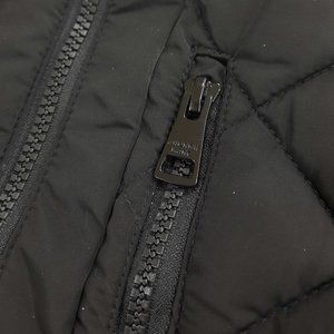Excellent condition. Thick, warm, quilted black vest with chunky zipper and sideways pocket on the front. There are two more hidden zipper pockets on each side. In excellent condition. No flaws. Size Small. Bust 38" Length 23"