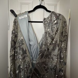 NWT MAC DUGGAL SZ 20 PLATINUM Hand Embellished Mesh Overlay Gown #5222