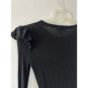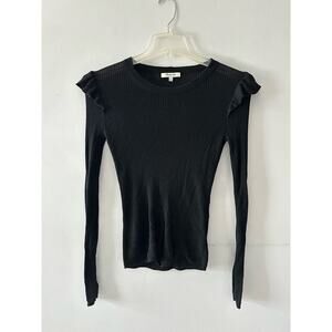 Madewell Top Women's XS Black Sweater Ruffle Ribbed Lightweight Pullover