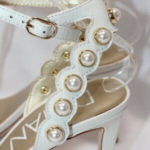 NWT Deltan Cloud Dancer Ivory Pearl and Gold Heels.