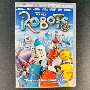 Enjoy the vibrant and imaginative world of 'Robots' on DVD. Dive into a colorful adventure with a mix of blue, red, and yellow characters. Perfect for family movie nights.