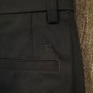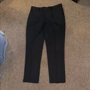These dark grey dress pants offeri a refined look suitable for formal occasions. The tailored straight-leg design ensures a sleek silhouette, complemented by a flat front waistband for a polished finish.