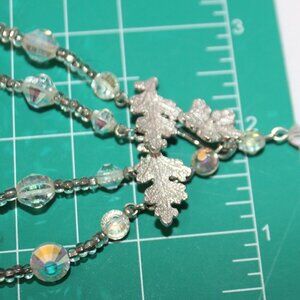 Stunning and rare vintage AB crystal necklace by Deltah. Beautiful double strand crystal choker length necklce featuring adjustable hook closure. Two strands of gorgeous faceted aurora borealis crystals end in silver tone leaf and floral with tiny crystals that hang from single strand adjustable crystal links. The colors reflected by the light on these beads are fabulous. Original box and maker quality guantee included.