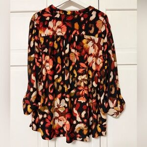 Cocomo Dark Floral Roll Tab Sleeve Blouse Size 2X Mature Office Career Casual