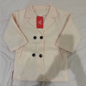 Chic and warm light pink pea coat with double-breasted design. Ideal for stylish outings.