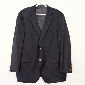 Lands' End Wool Navy Blazer Sports Coat With Gold Buttons Size 48L