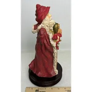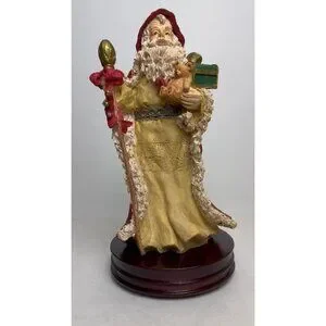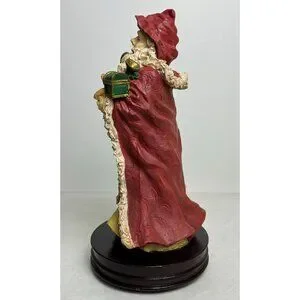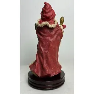 This exquisitely detailed musical Santa figurine, featuring a rich red cape and gold accents, brings a festive and elegant touch to seasonal decor.
