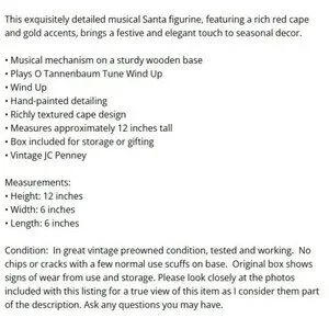 Vtg Musical Santa Figurine Wooden Base 12" Tall O Tannenbaum Wind Up Red Cape