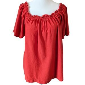 LC Lauren Conrad Red-Orange Peasant Ruffled Neck Flutter Sleeves Top Size Small