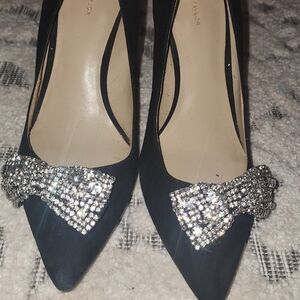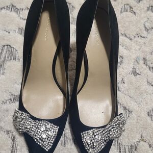 Ann Taylor Black Heels with Sparkling Bow