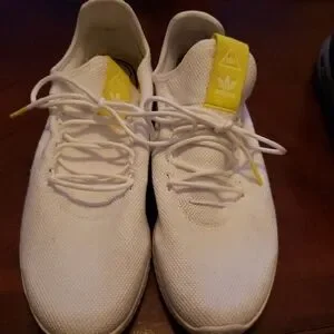 Stylish white Adidas sneakers featuring bold yellow details. Ideal for everyday wear. Good used condition .