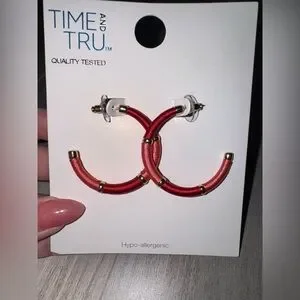 NEW-Time and Tru Women's Gold Tone Thread Wrap Hoop Earrings