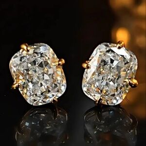 Stunning Radiant Cut Lab-Created Diamond Stud Earrings | NWT - Gold