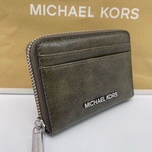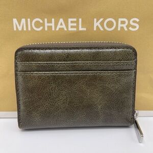 MICHAEL KORS Jet Set Medium Distressed Zip Around Card Case Olive NWT