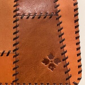 Stylish leather handbag by Patricia Nash. Features a warm tan color and elegant design.