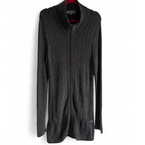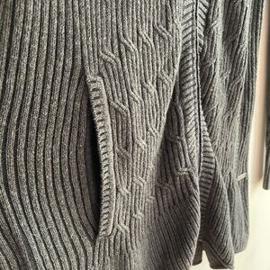 Charcoal grey long zip up cabled cardigan from Eddie Bauer. Funnel neck and two front pockets. Super soft and cozy!