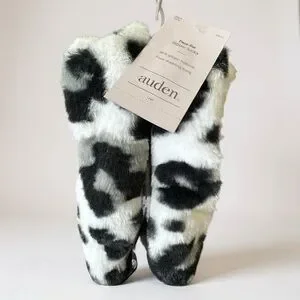 Auden Faux Fur Leopard Print Slipper Socks Women's Size S/M 6-7 NWT