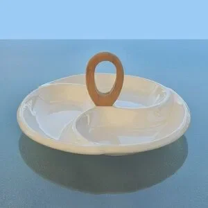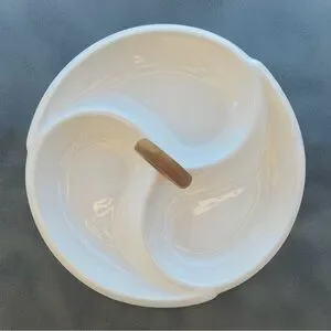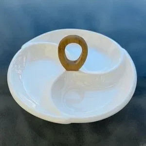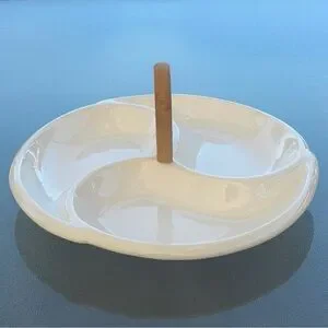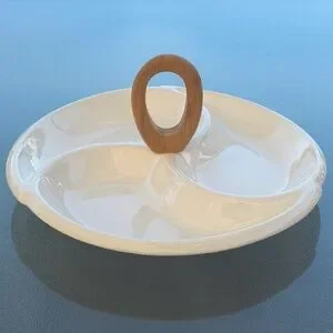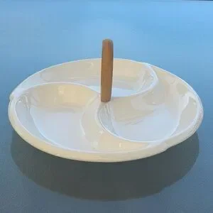 Brandani White Porcelain Round Divided Serving Dish with a Bamboo Handle