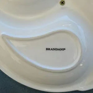 Brandani Porcelain Round Divided Serving Dish with a Bamboo Handle