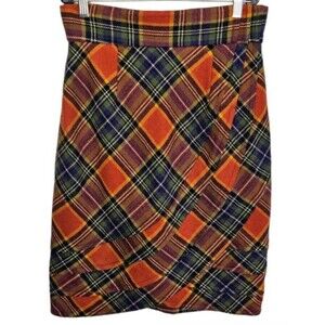 Anthropologie Skirt Womens 6 Orange Plenty Tracy Reese Plaid Pencil Wool Tweed