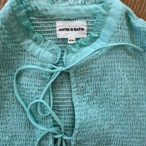 Gorgeous Aqua / Seafoam Antik Batik Shirt / Blouse, Size M (French Size 40), Authentic NWOT; Originally $250