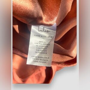 New with tags never worn. Lulu Satin Bodysuit in Rusty Rose Pink in size Small. Thick Shoulder Straps and 2 button snap bottom. Please see photos for all details of the item. Ask any questions.