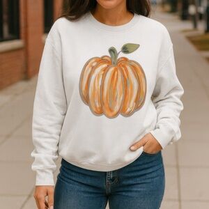 Celebrate the cozy charm of the season with this pumpkin print sweater, a perfect blend of comfort and festive flair. Designed with a classic round neckline and long sleeves, it offers a relaxed, easy-to-wear silhouette ideal for cool-weather days. The playful pumpkin design adds a cheerful autumn touch, making it perfect for seasonal outings or casual get-togethers. Soft and stretchy, this sweater keeps you warm while maintaining a stylish, laid-back look.