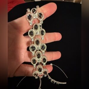 Dillards Bracelet and Matching Earrings - Clear & Dark Gray Stones - Stretchy Bracelet - Worn Once, no missing stones that I can see