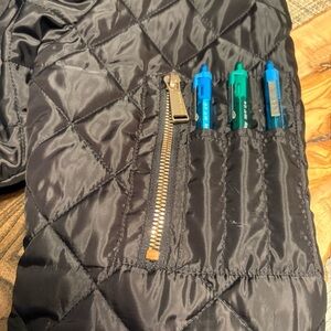 BCBGeneration Black Quilted Jacket with Vibrant Orange Lining Size large