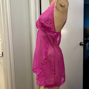 Like New! EUC Vintage Victoria's Secret - Sheer mesh and floral lace appliqué. Fully adjustable, Size XS. No flaws, stains or tears. Beautiful deep fuchsia and perfect for date night or anytime to feel special :)