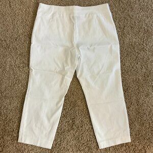 Pull-on capri pants, sleek silhouette with endless styling potential. Built-in tummy control panel helps flatten your middle and adds instant polish to any ensemble. The quality, form-fitting fabric also keeps its shape wash after wash. Perfect for any occasion. These are literally the most comfortable pants I've ever worn; I just wear a different size now. Still in excellent condition.
