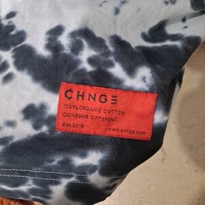 Chnge brand, Women's size XL, new without tags, never worn, black and gray tiedye with graphic design, 100% organic cotton
