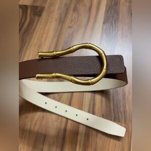 J McLaughlin reversible Leather Belt with Gold bamboo style buckle