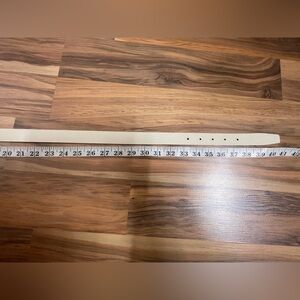 Elegant brown and white leather belt featuring a stylish gold buckle. Perfect for adding a touch of sophistication to any outfit.