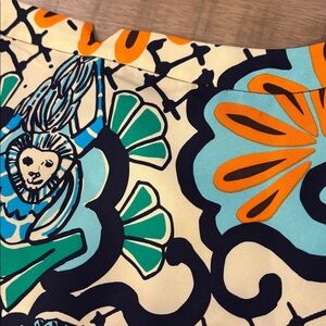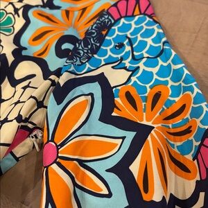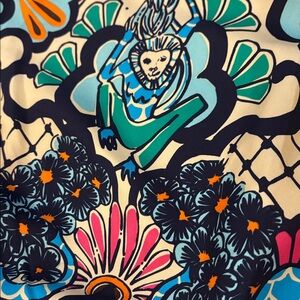 Absolutely gorgeous silk dress from Lilly Pulitzer in a size 2. The pictures don’t do this dress justice - it’s truly so vibrant in person. Removable belt. Excellent condition except for a tiny spot on the back of the dress toward the top - see last pic. It truly blends in so well and isn’t noticeable.