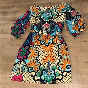 Lilly Pulitzer STUNNING Silk Lillypalooza Vibrant Balloon Sleeve Dress w/Belt 2