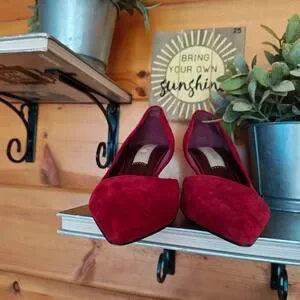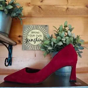Franco Sarto Tana Red Suede Leather Pointed Toe Heel Pump Half D'Orsay Size 6 M