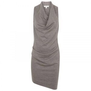 Helmut Lang Wool Intermix Asymmetrical Dress Cowl Neck Sz Large Gray Sleeveless