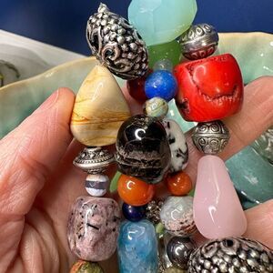 Handmade Genuine Multi Gemstone Chunky Beads Blessingway Necklace 22” 925 Silver