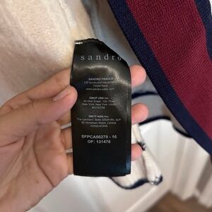 Sandro Paris Wool Cable Knit Cardigan Sweater Small Cream Burgundy