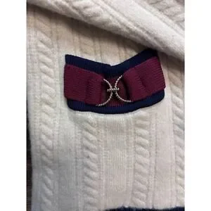 cream wool cardigan, burgundy trim sweater, Sandro small sweater, designer cardigan women,