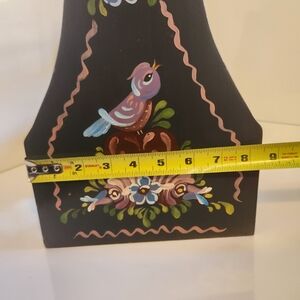 Vintage Painted Black Birds Wood Caddy Storage Basket Farmhouse Decor Excellent condition See pics for measurements