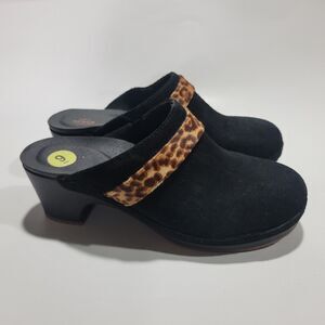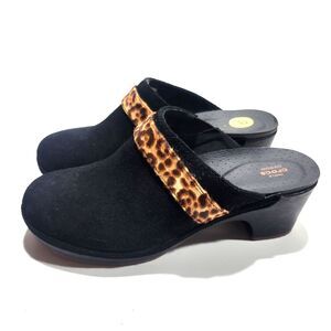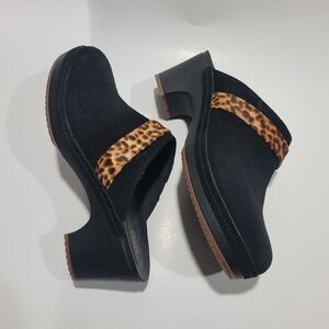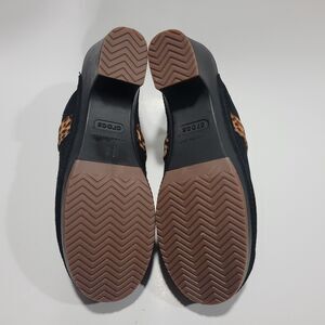 Crocs Womens Suede Block Heels Clogs Black Sz 9W Pre owned Very Good Condition upper suede Outsoles Rubber